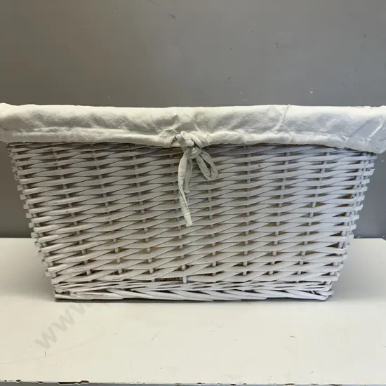 Vintage White Cane Rectangular Basket/Hamper H28,W53,D22cm.