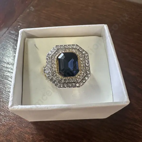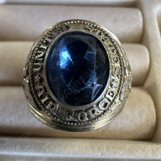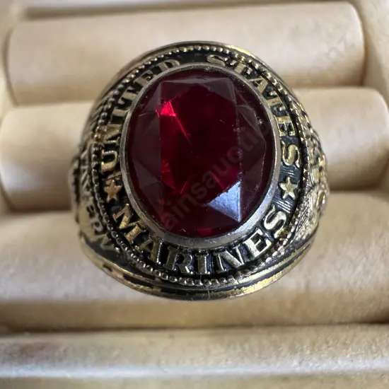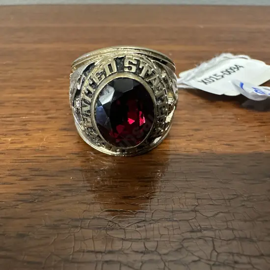 United States Army Military Ring, Gold Tone With Red Crystal Stone