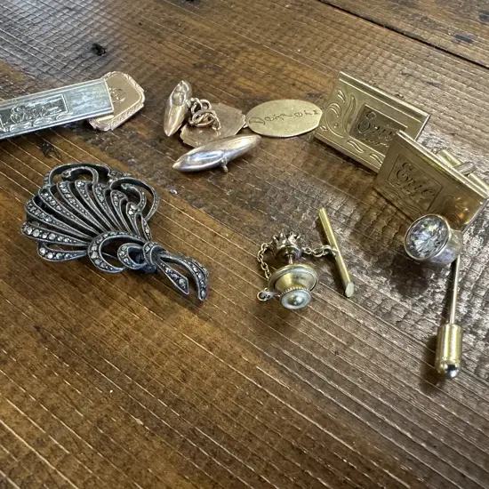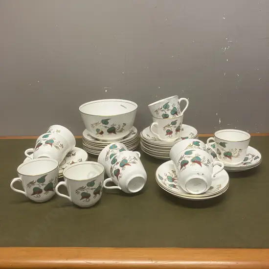 Aynsley Art Deco Grey Flower Patterned Teaware Including Trios x3, Cake Plate, Creamer, Sugar Bowl & Extras (as found)