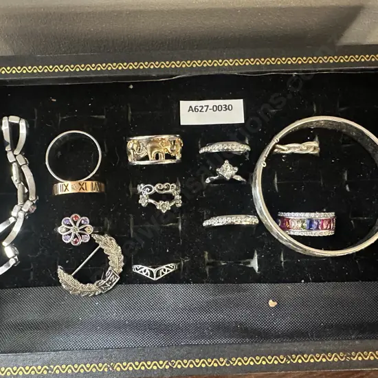 1930's Ladies Fitted Travelling Vanity Case, Sterling Silver Tops & Brushes All Hallmarked Aidie Brothers Ltd Birmingham