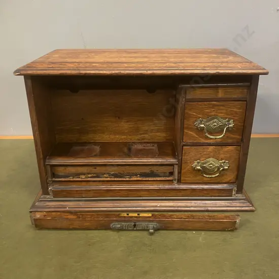 Late Victorian Oak Correspondence Cabinet With Interior Letter Rack & Three Drawers. H25 W37.5 D20.5cm