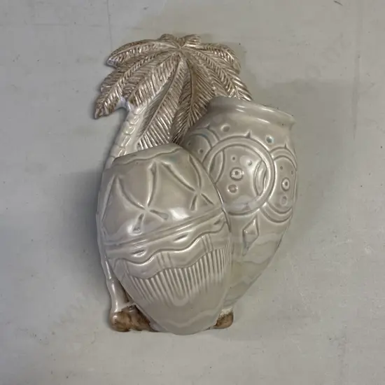 Awesome Antique Shell Shaped Coal Scuttle with Shovel. Porcelain handles and castors