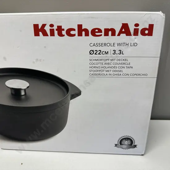 KitchenAid Cast Iron Cocotte Casserole Dish With Lid, 22cm / 3.3 Litre In Box