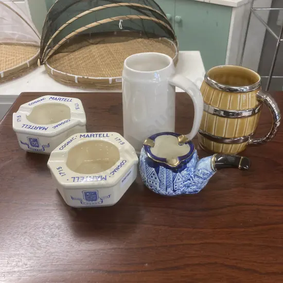 Selection Of Vintage China Including Wade Beer Stein, Martell Ashtrays Etc