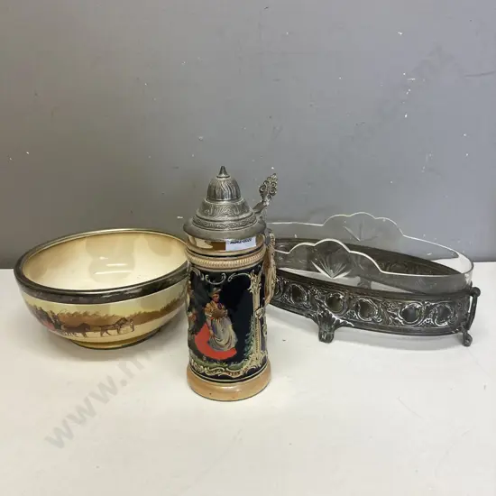Royal Doulton Seriesware Bowl, Lidded Beer Stein, Silverware & Glass Serving Dish