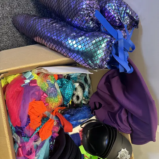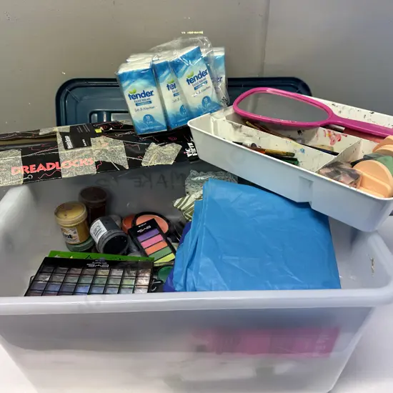 Clear Lidded Bin Of Face Paint, Make-Up, Capes, Wipes Etc