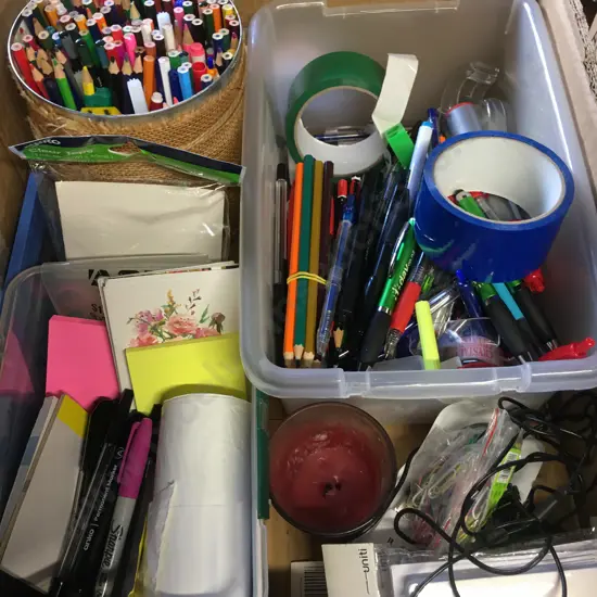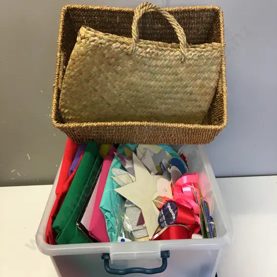 Clear Bin Of Arts & Crafts With Cane Storage Basket & Bag