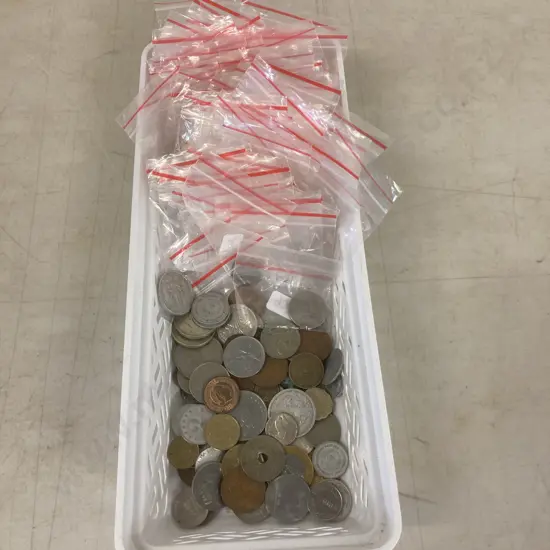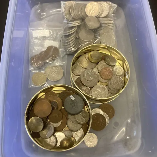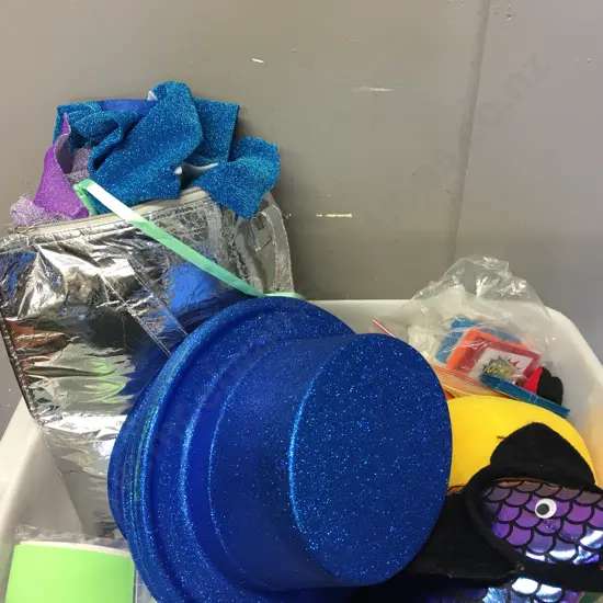 Clear Bin Of Sundries Including Blue Hats, Scarves Etc (Not Saleable - Dumped)