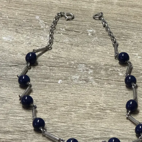 Vintage 925 Navy Blue Ball & Silver Necklace