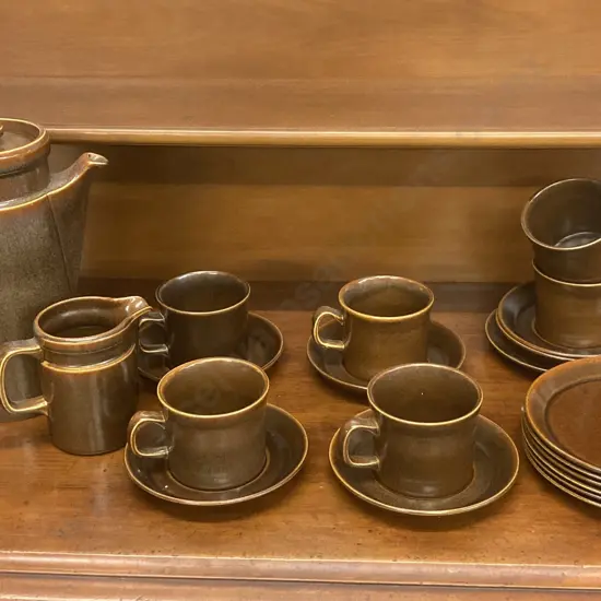 Mikasa Eclipse Coffee Set With 8 x Cups Antique Gold 5758 & 8 x Eris Saucers & Plates 5743-M (no Lid For Sugar Bowl)