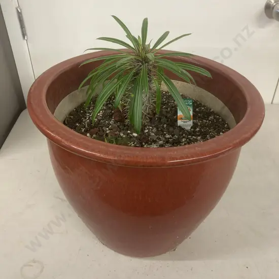 Pachypodium Plant In Red Glazed Pot. 31 x 37cm