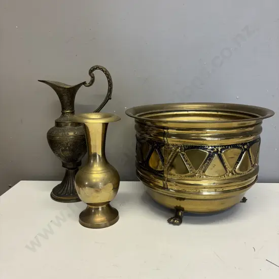 Vintage Pair of Solid Brass Fire Dogs with Fire Tools
