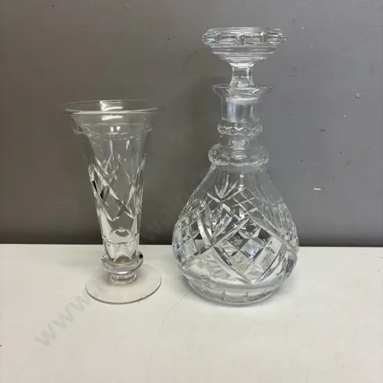 Vintage Stuart Crystal Vase H19cm with Heavy Cut Decanter