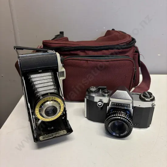 Vintage Praktica Pentacon Camera with Kodak Dakon Folding Junior II and Bag