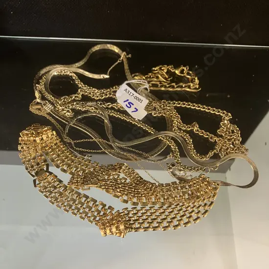 Selection Of Gold Coloured Costume Jewellery Including Necklaces & Bracelets
