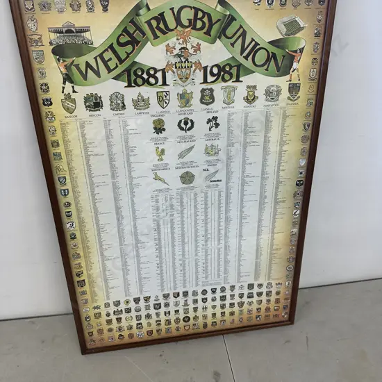 Welsh Rugby Union Framed Artwork 1881-1981 H91,W63cm.