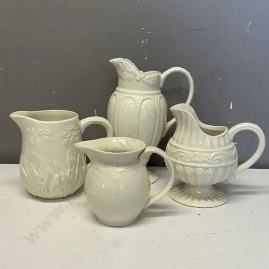 Four Unmarked Creamware Pottery Jugs H23.5, 16, 14.5 and 12cm