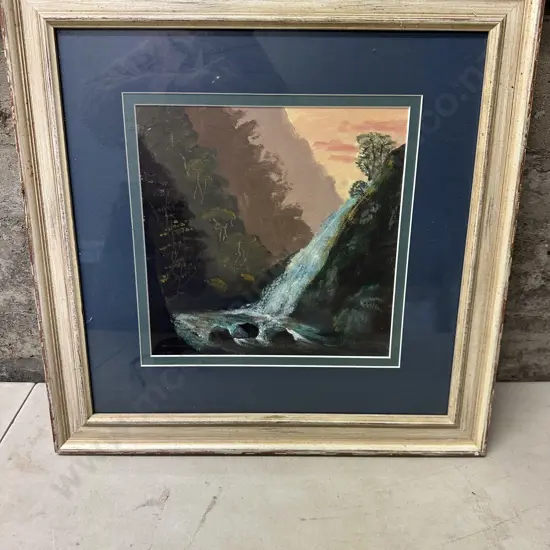 Cream Framed Pastel Artwork Water Fall Landscape Scene 46x46cm.