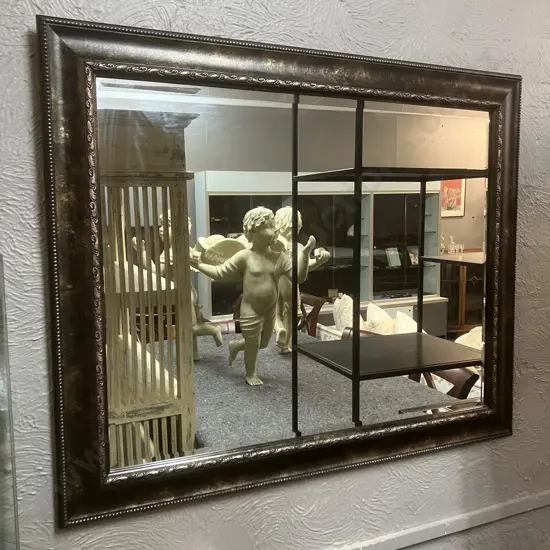 Bevelled Edged Wall Mirror With Black & Rose Gold Coloured Framed. 75 x 92cm