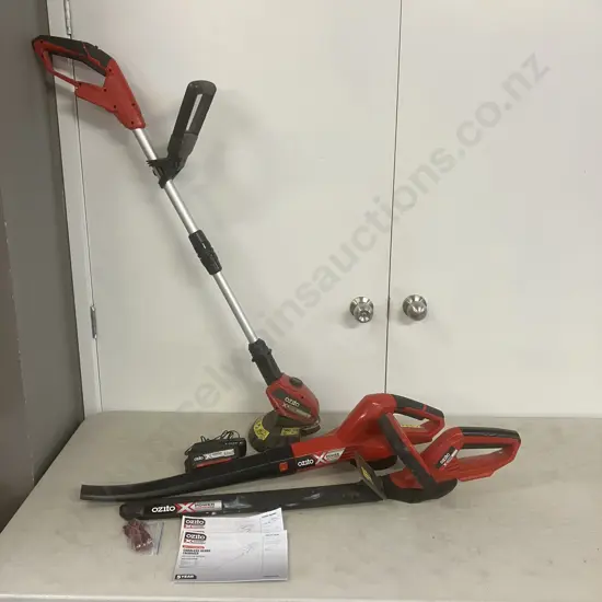 Ozito X Power XChange 18V Cordless Blower, Hedge Trimmer, Grass Trimmer With 2.0Ah Battery & Charger