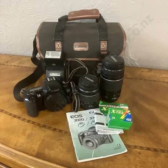 Canon EOS 3000 Autofocus SLR 35mm Film Camera with Canon Zoom Lenses EF 75-300 f1.4-5.6 & EF 28-80 f/3.5-5.6, Canon Bag