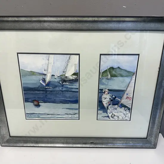 Framed Watercolour Painting Boats In Harbour By B.Hutton 06