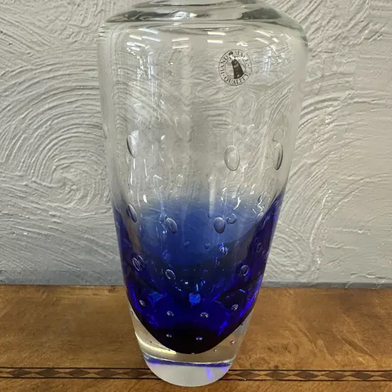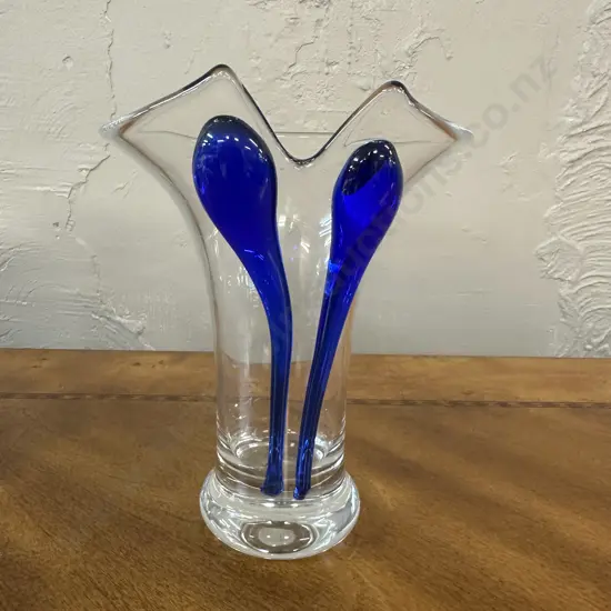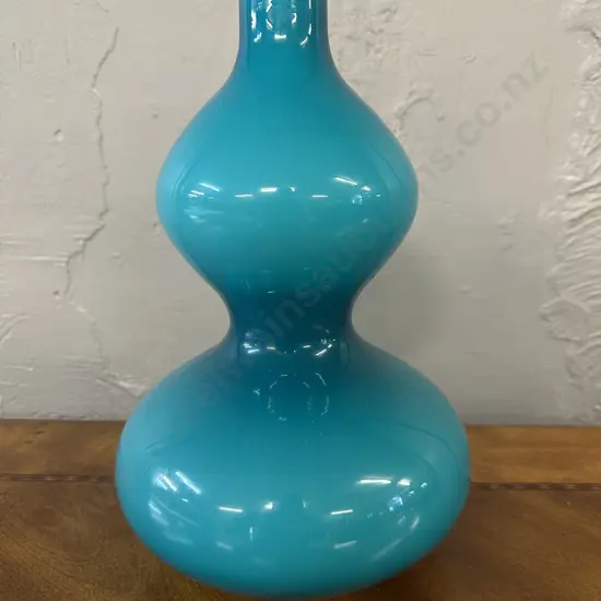 Stunning Blue Double Gourd Glass Vase. H33cm