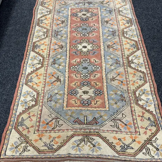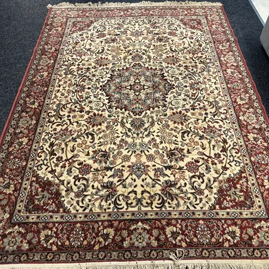 Belguim Woollen Floor Rug Red/Cream/Pale Blue Detail L245,W170cm.