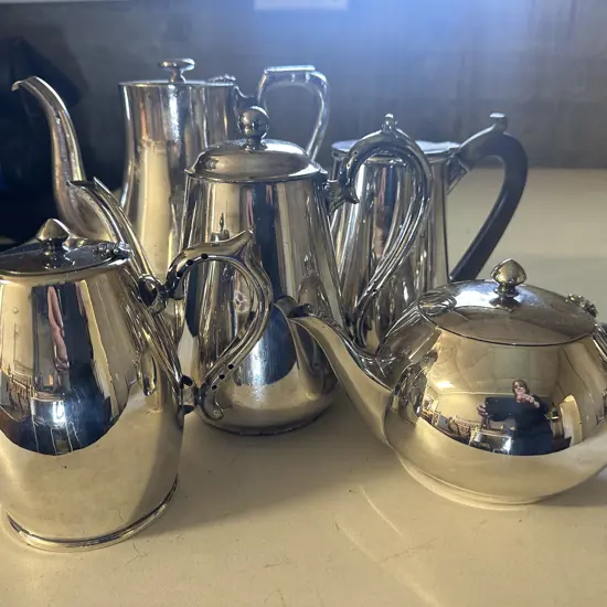 Assorted Vintage Silver Ware Coffee Pots & Teapot Including Waterhouse,Walker & Hall Etc