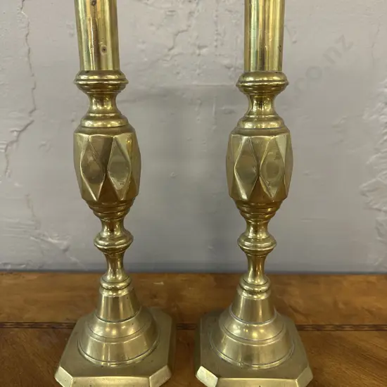 Pair Of Brass Candle Stick Holders H28cm.