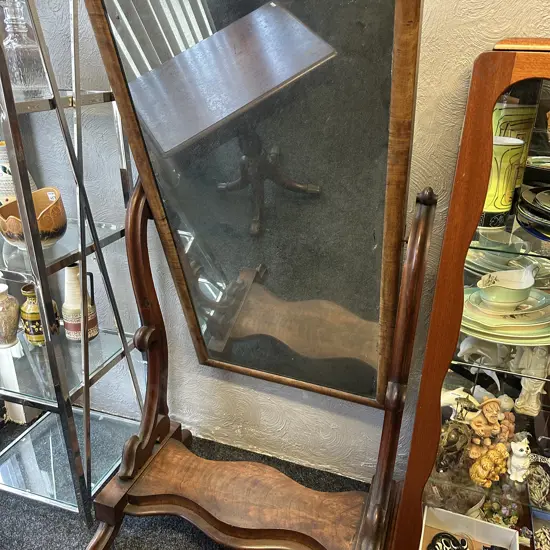 Antique Victorian Mahogany Full Length Free Standing Cheval Mirror On Metal Castors. H165cm (AF)