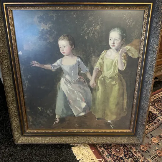 Gilt Framed Artwork Girls Holding Hands H75,W70cm.