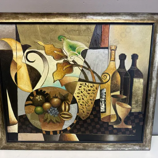 Gilt Framed Cubist Style Still Life Painting H60, W70cm.