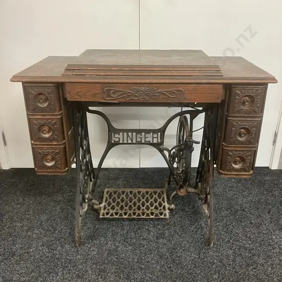 1908 Singer Model No 15K Treadle Sewing Machine With Some Accessories, #V843573 (As Found)