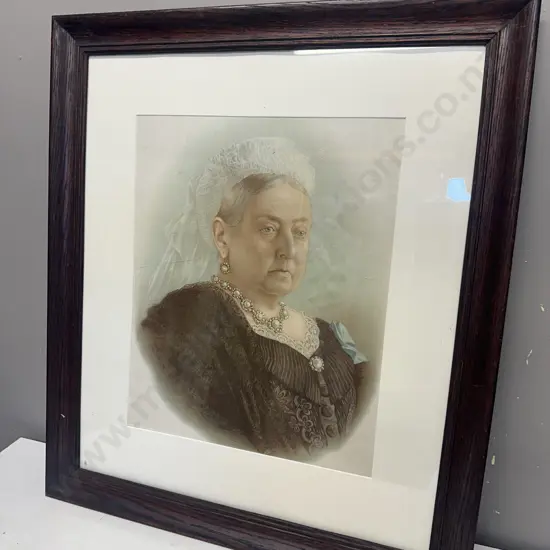 Vintage Oak Framed Portrait Of Queen Victoria H70,W61cm.