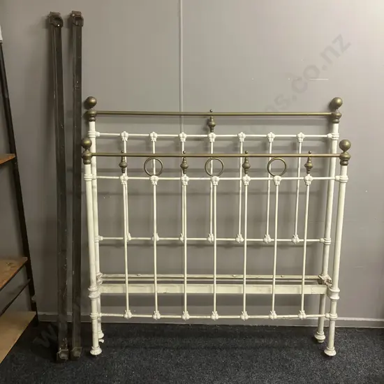 Antique Brass & Cream Bed Ends With Rails. W137cm