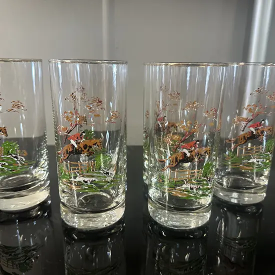 Set of 6 Vintage Hunting Themed High Ball Tumbler Glasses
