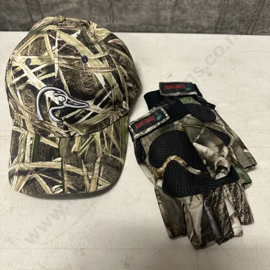 Ducks Unlimited Camouflage Cap & Stoney Creek Camo Fingerless Gloves