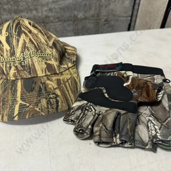 Hunting & Fishing Camouflage Cap & Stoney Creek Fingerless Gloves