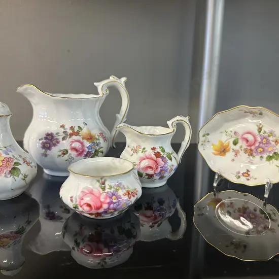 Burleigh Victorian Chinz Pink Dinnerware Including Teapot