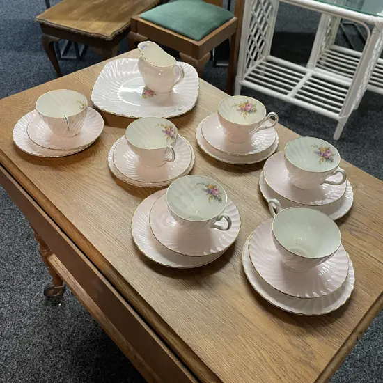 20 Piece Foley Tea Set Pink with Floral Decoration
